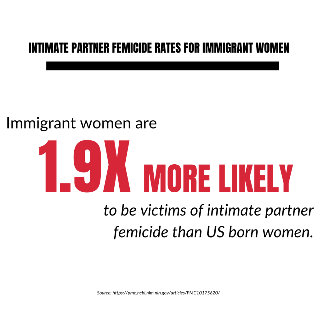 - More severe forms of intimate partner violence are disproportionately affecting women. Immigrant women are 1.9 times more likely to be victims of intimate partner femicide than US born women. (link)