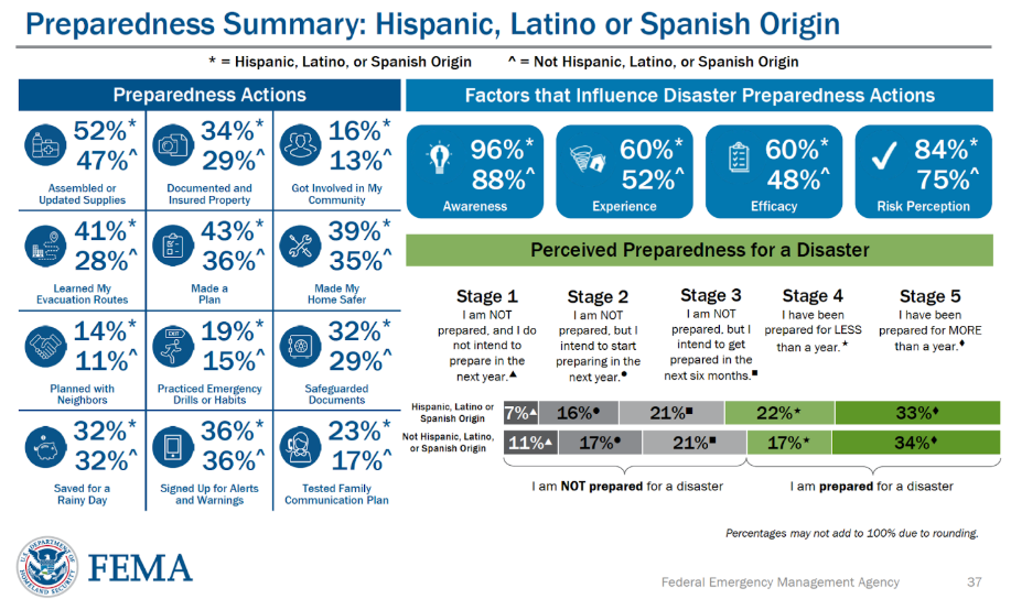 People with awareness were 5x as likely to take at least 3 of the 12 preparedness actions than people without awareness. FEMA.gov