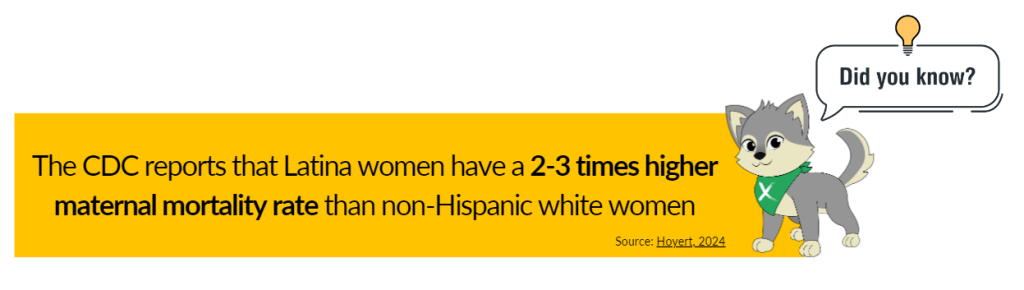 High Maternal Mortality Rates: Latina mothers have disproportionately high maternal death rates, which are typically caused by limited access to quality and affordable healthcare throughout pregnancy and delivery (The Commonwealth Fund, 2024a).
